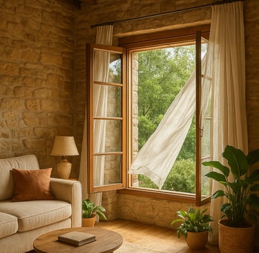 🪟 Abra as janelas por pelo menos 30 minutos ao dia, permitindo que o ar circule e se renove.